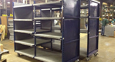 At RWM, we can provide any custom, new, innovative fabrication to enhance the ergonomics of our customer’s needs. RWM uses the latest technology and machinery in our fabrication process. Our use of CNC programmed plasma cutters, certified MIG welders, and robotic cell welders create a high quality fabrication for our customers. We also offer a newly added powder coat finish on many of our fabrications. We can cut virtually any 2D shape or contour up to ¾ inch thick steel. From concept to reality, we have the capabilities to make it and we are able to manufacture and fulfill large orders efficiently. As a customer of RWM, we provide you with the most professional, longest-lasting fabrications and services in the industry. Whether you need a unique cart, rack, handling fabrication or any other custom design, we can build it. RWM products are Made in the USA.
